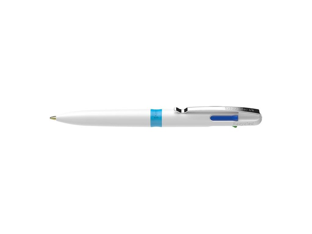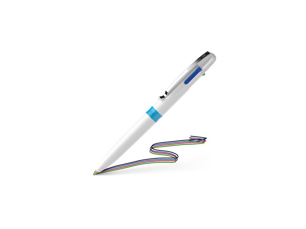 Guľôčkové pero, 0,5 mm, stláčací mechanimus, 4-farebné, SCHNEIDER "Take 4", biela