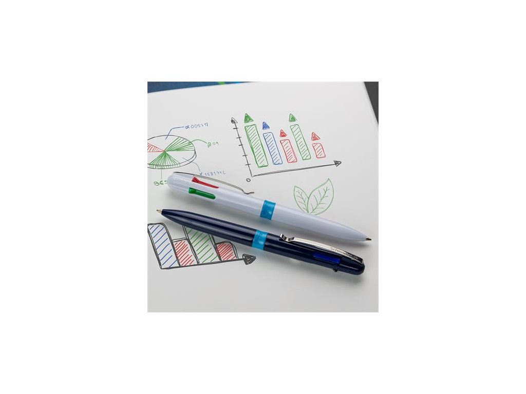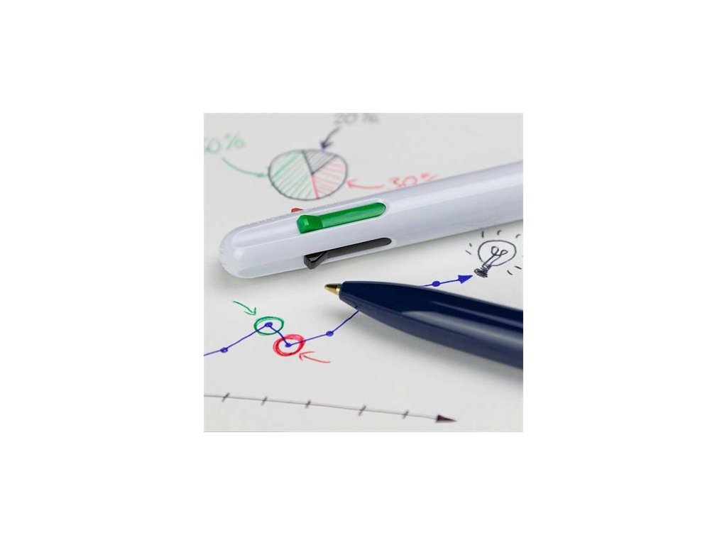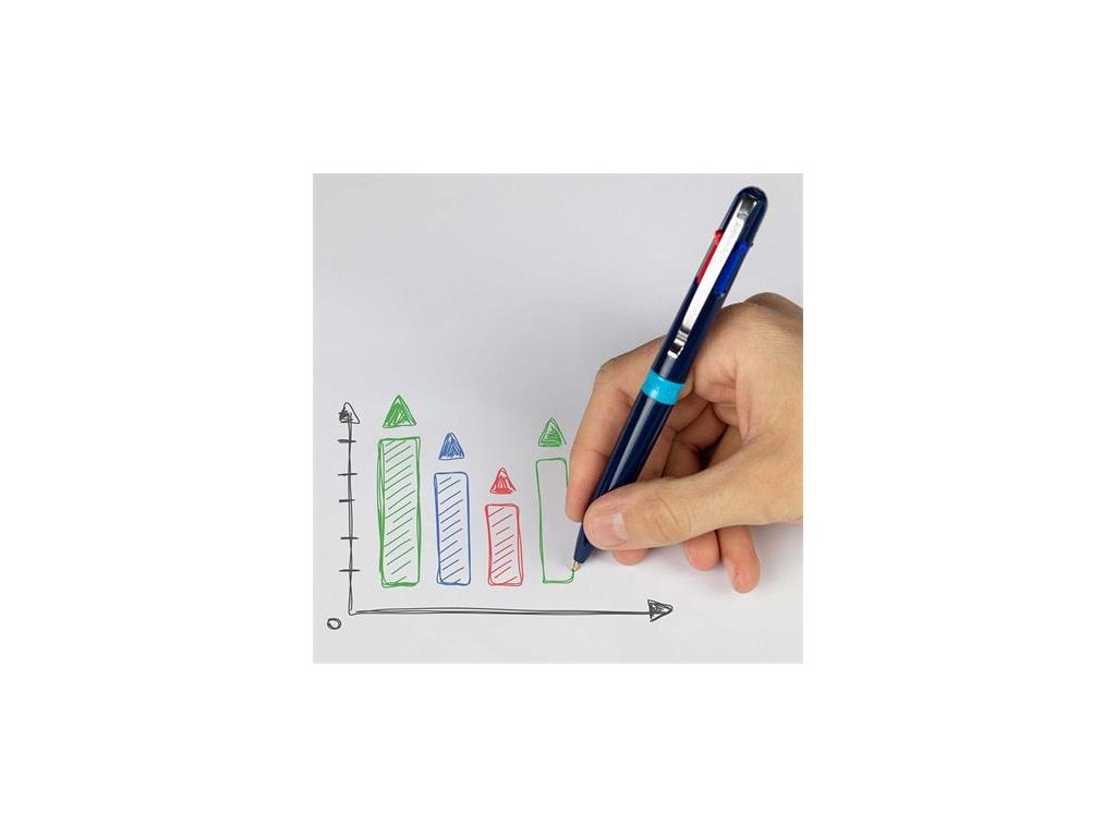 perfektné 4v1 riešenie vhodné na plánovanie, organizovanie a štruktúrovanie 4-farený atrament: čierna, červená, modrá a zelená farby je možné rýchlo a ľahko meniť atrament „Viscoglide“: poskytuje ľahšie a plynulejšie písanie silný kovový klip telo pera z 92% z recyklovaného plastu hrúbka písma: 0,5 mmDodatočné parametre
