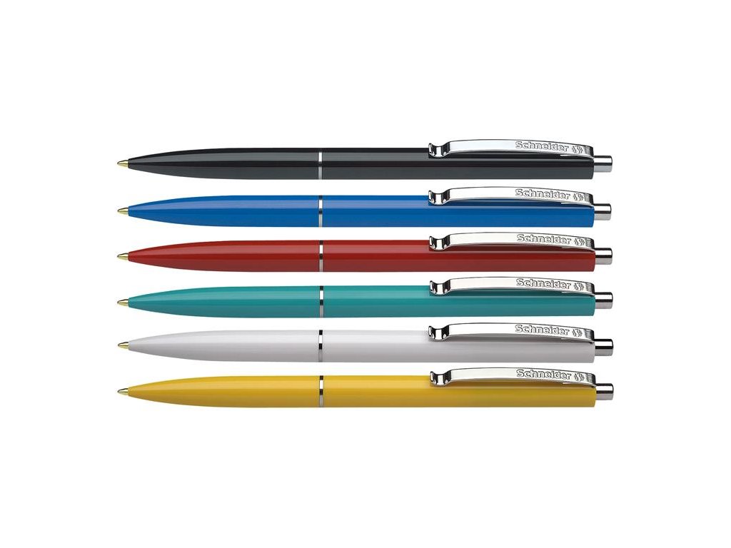 dizajnové, tenké telo pera stláčací mechanizmus hrot z nerezovej ocele kovový klip vodeodolný dokumentačný atrament hrúbka písma: 0,5 mm vymeniteľná náplň (SCHNEIDER „Office 575”, obj. kód: TSC765K05) balenie mix farieb (TSCK15V50) dodávame s modrým atramentomDodatočné parametre