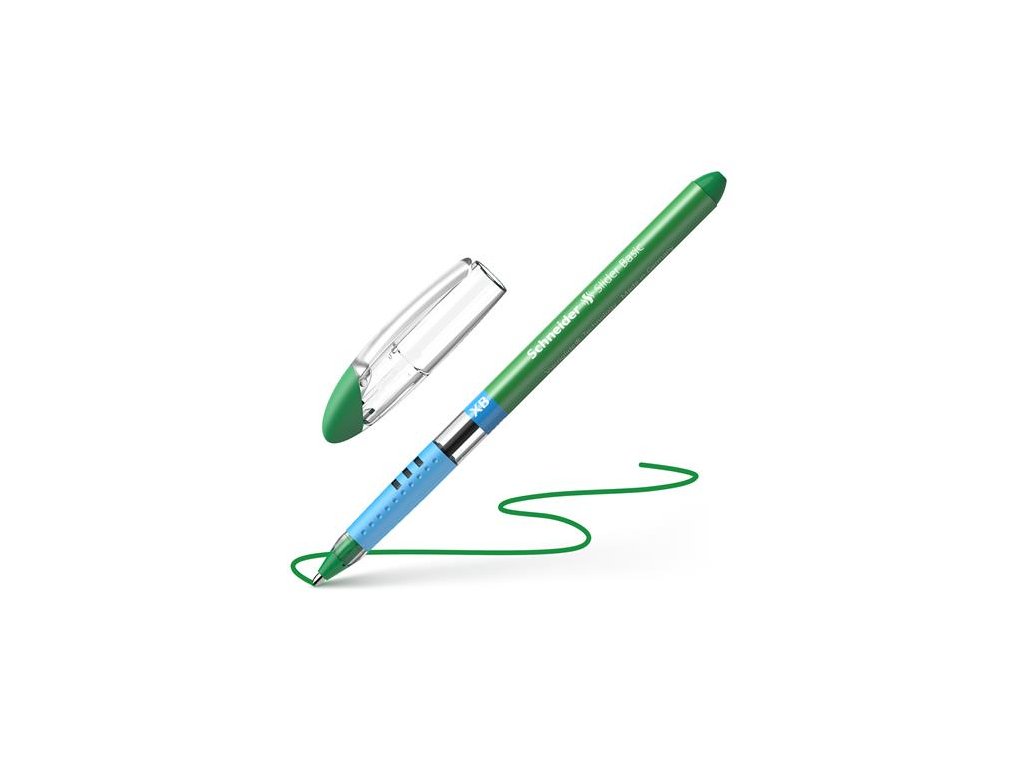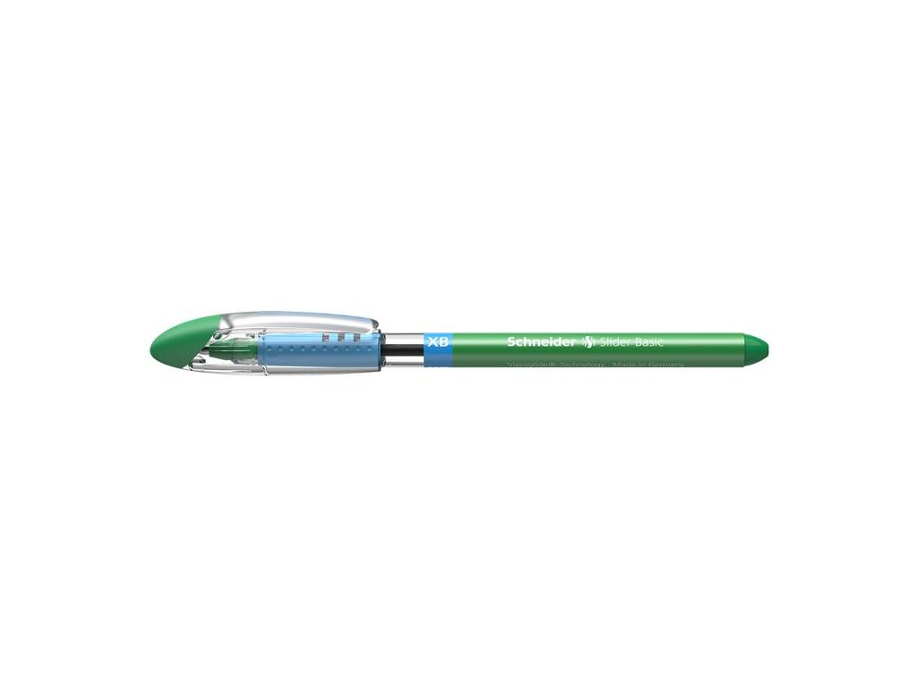 Guľôčkové pero, 0,7 mm, s vrchnákom, SCHNEIDER "Slider Basic XB", zelená