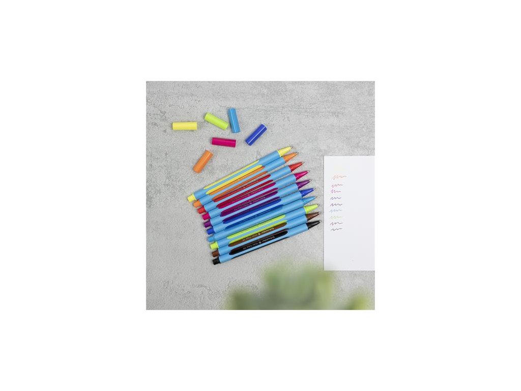 vyrobené inovatívnou „ViscoGlide” technológiou písmo spája najnovšie vlastnosti plniacich pier a rollerov pogumované telo pera trojuholníkového tvaru nerozmaže sa ani na lesklom povrchu vrchnák vo farbe náplne rýchloschnúci atrament odolné voči vyschnutiu jednorazovéDodatočné parametre