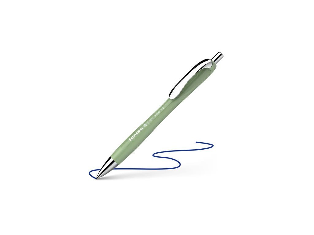 Guľôčkové pero, 0,7 mm, stláčací mechanizmus, SCHNEIDER "Slider Rave XB", organická zelená