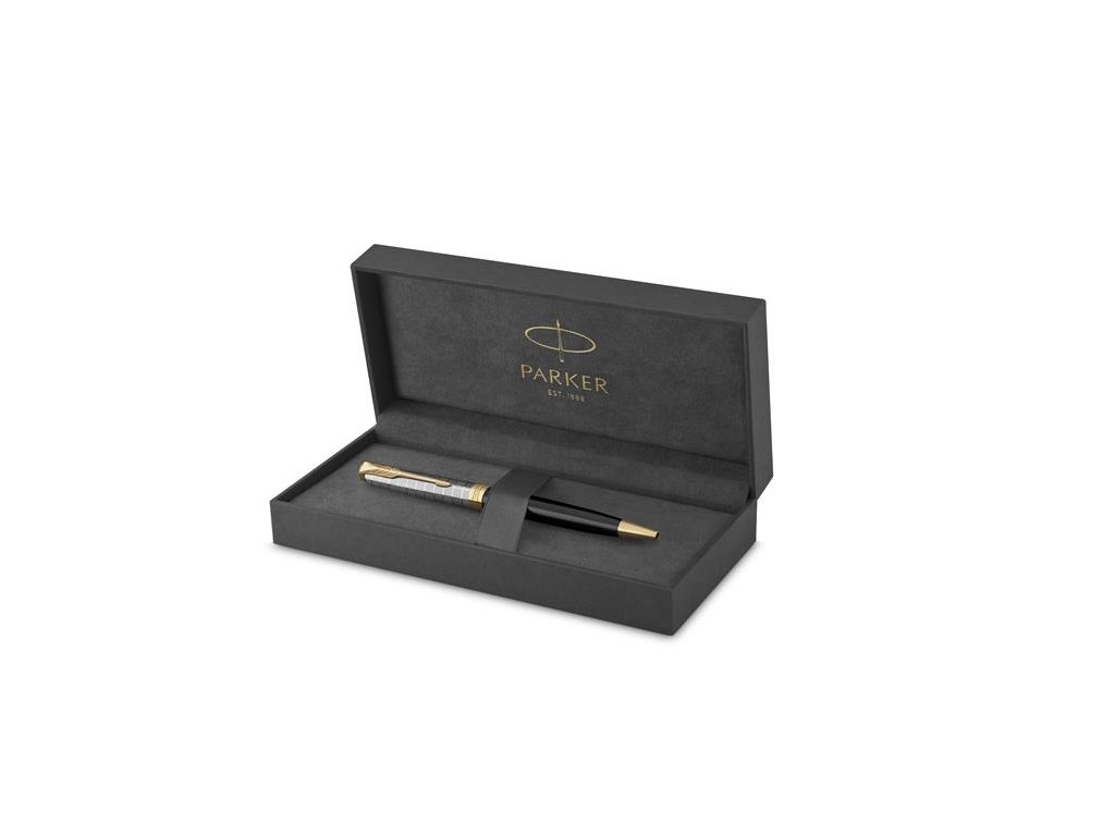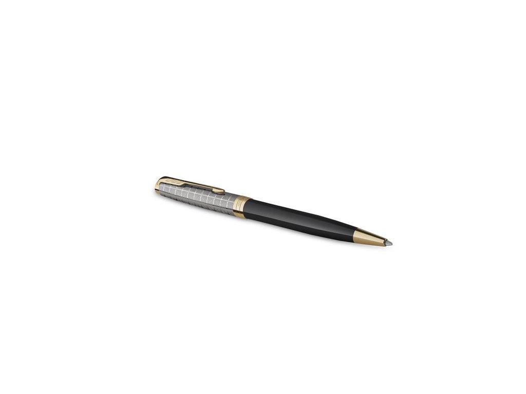 Guľôčkové pero, 1 mm, telo pera: kovová čierna, zlatý klip, PARKER "Royal Sonnet Premium", čierna