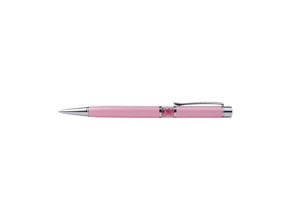 v strede plnené ružovými krištáľmi Swarovski ružové telo pera 14 cm kovové pero s logom, gravírované laserom s vymeniteľnou náplňou farba náplne: modrá hrúbka písma: 0,7 mmDodatočné parametre