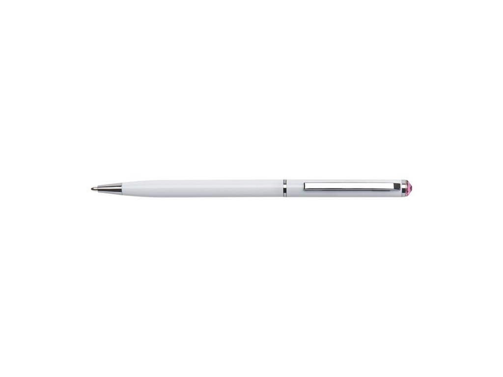 Guľôčkové pero, Crystals from SWAROVSKI®, s ružovým krištáľom, 13 cm, ART CRYSTELLA, biela