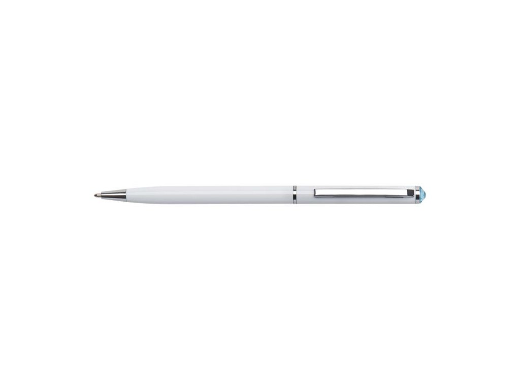 Guľôčkové pero, Crystlas from SWAROVSKI®, s modrým krištáľom, 13 cm, ART CRYSTELLA, biela