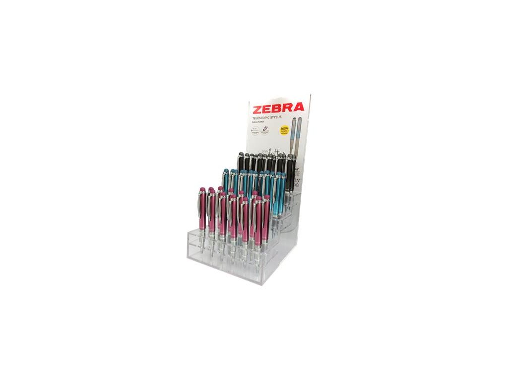 Guľôčkové pero, displej, 0,24 mm, teleskopické, nehrdzavejúca oceľ,, ZEBRA "Telescopic Metal Stylus", modré