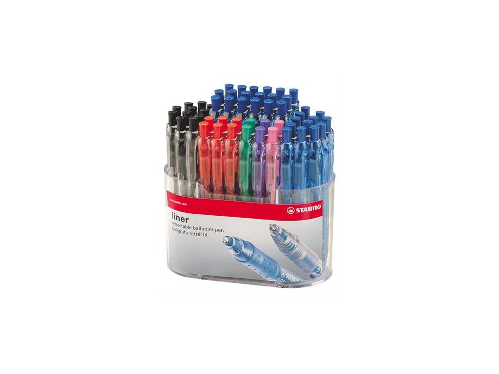 Guľôčkové pero, displej, 0,38 mm, stláčací mechanizmus, STABILO "Liner 308", mix