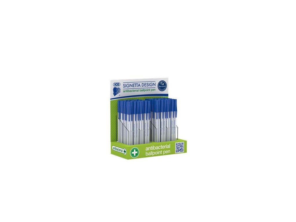Jednorazové antibakteriálne gulôčkové pero s bezpečnostným vrchnákom - plastové časti sú vyrobené zo zlúčeniny strieborných iónov, ktorá má antibakteriálny účinok - s vylepšenými baktericídnymi vlastnosťami sa patogény usadené na povrchu usmrtia za 24 hodín s účinnosťou 99,9% - antibakteriálny účinok bol testovaný a potvrdený spoločnosťou Industrial Microbiological Services Ltd. v Anglicku - registračné číslo: 3264423 - hrúbka písma: 0,7 mm - dĺžka písania: 2500 m Značka: ICO Výrobca: ICO ZRT Adresa: 2013 Pomáz, ICO út 5.; EU, Hungary Web: www.ico.eu Email: post@ico.euDodatočné parametre