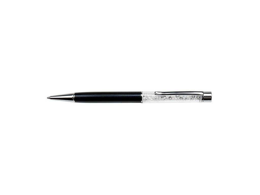Guľôčkové pero, s bielym krištáľom SWAROVSKI®, 14 cm, ART CRYSTELLA, čierna