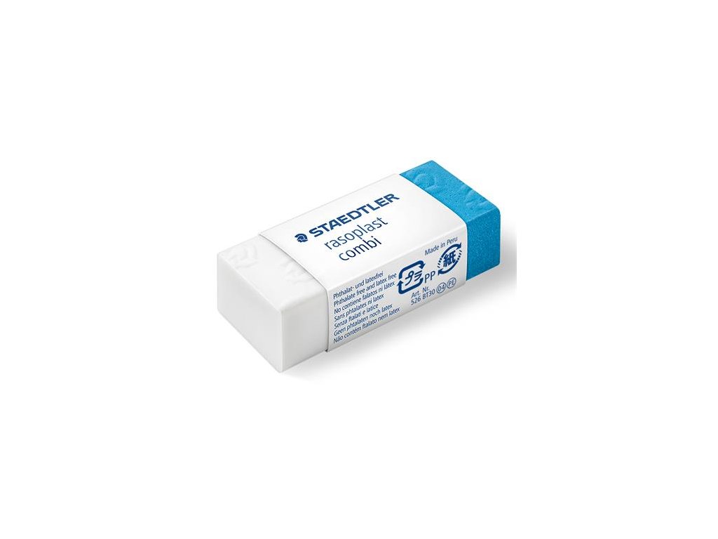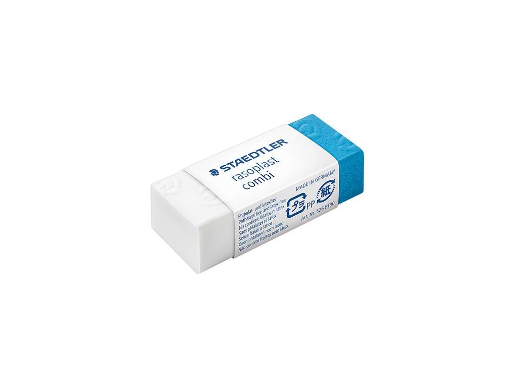 modrá časť na gumovanie atramentu, biela časť na ceruzky v papierovom obale fóliované po jednom rozmery: 43x19x13 mm Značka: STAEDTLER Výrobca: STAEDTLER SE Adresa: Moosäckerstr. 3 , 90427 Nuremberg, Germany Web: http://www.staedtler.com Email: https://www.staedtler.com/intl/en/service/contact/Dodatočné parametre