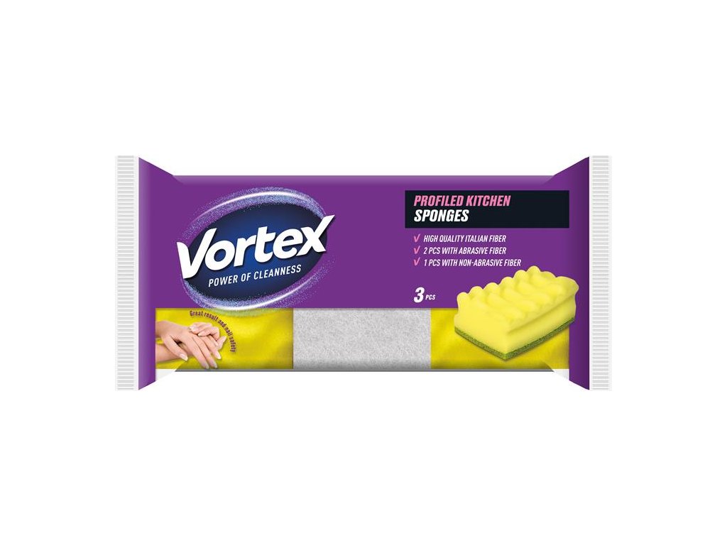 VORTEX Profiled&Care kuchynské hubky sú vysoko kvalitné, ergonomicky tvarované čistiace hubky, ktoré poskytujú účinnú pomoc pri každodennom umývaní riadu a upratovaní.