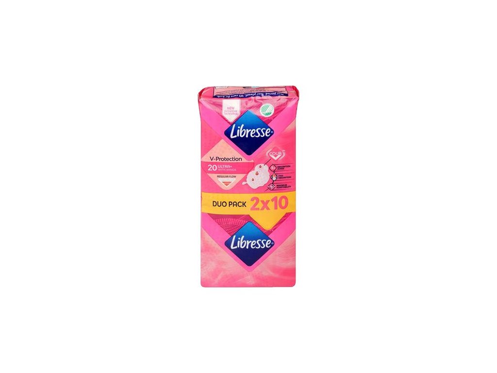 Nové hygienické vložky Libresse V-protection Ultra+ Normal s krídelkami a novou adaptívnou technológiou Cour-V™ poskytujú ochranu, ktorú potrebujete, perfektne sadnú a zostanú na svojom mieste.. Rýchla savosť a 3 absorpčné zóny na týchto mäkkých hygienických vložkách zaisťujú, že vaša V-zóna sa bude cítiť svieža a chránená po celý deň. Pretože v Libresse chceme, aby ste sa bezstarostne pohybovali. -zdravé hygienické vložky s krídelkami - vhodné pre normálnu intenzitu menštruácie -bezpečný strih -odporúčané pre aktívny pohyb -Roll-Press-Go balenie - 2x10 ks/bal.Dodatočné parametre
