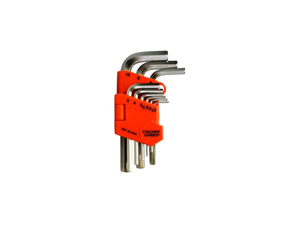 Obsah balenia: 9 imbusových kľúčov rôznych veľkostí v puzdre. Veľkosti: 1,5 - 2 -2,5 - 3 - 4 - 5 - 6 - 8 - 10 mmZnačka: FISCHER DAREX