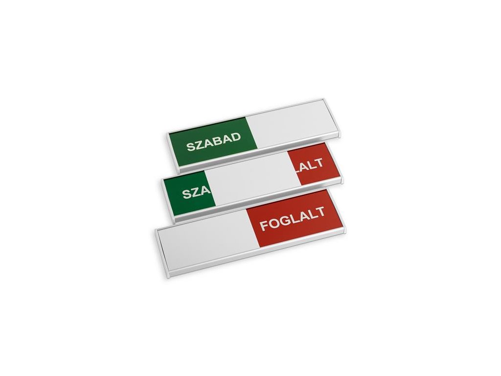 "Voľné/Obsadené" hliníková nástenná tabuľa, vhodná na umiestnenie vedľa kancelárskych dverí alebo pred rokovacie miestnosti.