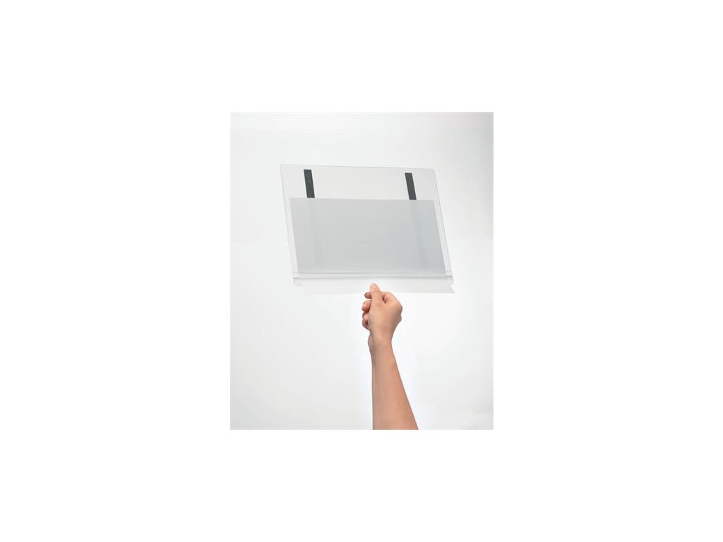 Vodeodolné informačné vrecká sú ideálne na umiestnenie informácií v exteriéri, napr. v záhradkárstve, saune, kúpeľoch, na bránach, všade, kde sa informácie dostanú do kontaktu s vodou alebo vlhkosťou. vodoedolné uzatváranie chráni obsah vreciek pred dažďom, vlhkosťou, zašpinením upevnenie pomocou magnetiek, ktoré sú pripevnené na zadnú stranu (sila lepenia - 0,95 N/cm/magnetka) testované podľa normy IPX5 proti striekajúcej vode (voda z 6,3 mm trysky mieri na zariadenie zo všetkých uhlov, pri prietoku 12,5 litrov za minútu a tlaku 30 kN/m2 počas 3 minút zo vzdialenosti 3 metrov) priehľadné, UV stabilné, odolá povetermostným podmienkam, nereflexné použitie horizontálne alebo vertikálne rýchla a jednoduchá výmena obsahu kapacita: 2 ks 160 g papiera (2 ks v balení) bezplatné šablóny sa dajú stiahnuť zo stránky www.durable.deDodatočné parametre
