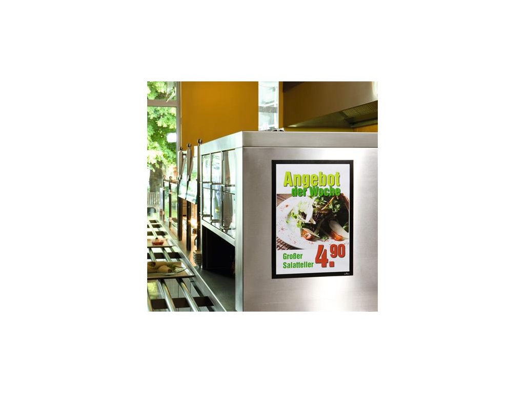 - DURAFRAME® informačný panel s prednou magnetickou časťou a zadnou samolepiacou časťou - ideálny na vystavovanie plagátov, kľúčových informácií, špeciálnych oznamov alebo dôležitých čísel - informácie sa ľahko vymieňajú a sú čitateľné z oboch strán, ak sa panel umiestni napr. na okno alebo priehľadné dvere - vhodný na všetky hladké a pevné povrchy - v prípade potreby je ľahko premiestniteľný bez potreby vŕtania • jednoduchá výmena vystavených dokumentov vďaka magnetickému uzáveru • oblasť použitia: inzeráty, umiestnenie informácií, oboznámenie, orientácia • vertikálne a horizontálne uchytenie • vonkajšie rozmery: 325 x 445 mmDodatočné parametre