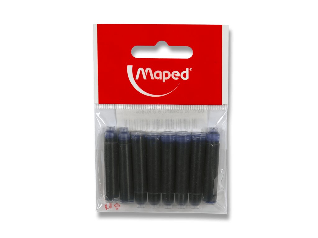 Standardní inkoustové bombičky do plnicích per a rollerů. Modrý zmizíkovatelný inkoust. Balení obsahuje 8 ks bombiček.