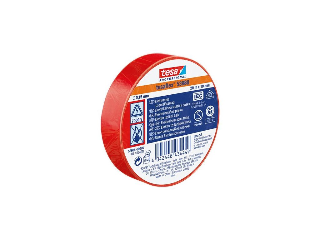 Izolačná páska, 19 mm x 20 m, TESA "Professional", červená