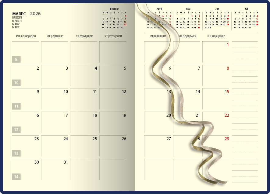 Luxusný denný diár z ekologickej kože s prehľadným kalendáriom na každý deň. Diár je v pevnej väzbe s prednou aj zadnou penovou doskou, doplnený ozdobným prešitím po obvode diára, strieborným plieškom s rokom a dvoma lacetkami. Obsahuje slovenské kalendárium. Rozmer: 142x204mm
