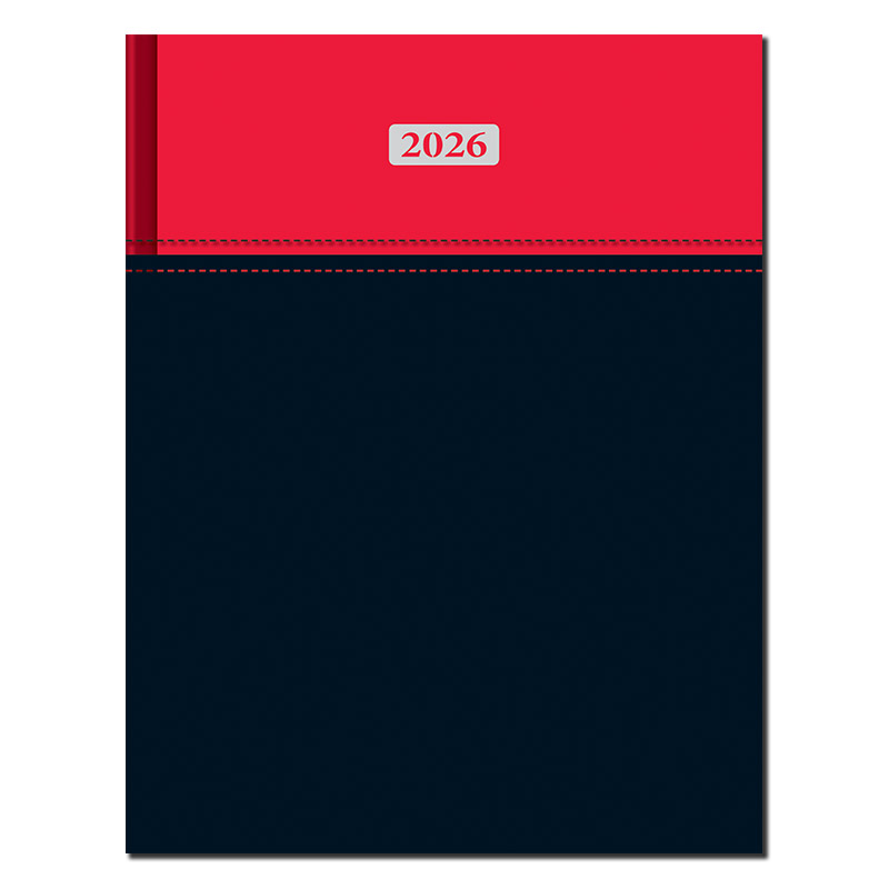 Zaujímavý dizajn týždenného diára tvorí kombinácia dvoch farieb poťahového materiálu. Farebná kovová nálepka roku, ozdobné kontrastné prešitie. Predná doska penová. Slovenské prehľadné kalendárium. Rozmer: 202x260mm