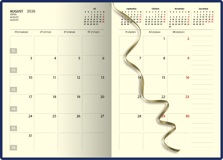 Obľúbený týždenný diár má oderuvzdorný povrch s motívom folklórnej stuhy. Efektná razba fóliou a 3D lak vytvárajú dokonalý dizajn. Jediný svojho druhu na trhu. Rozmer: 142 x 204 mm