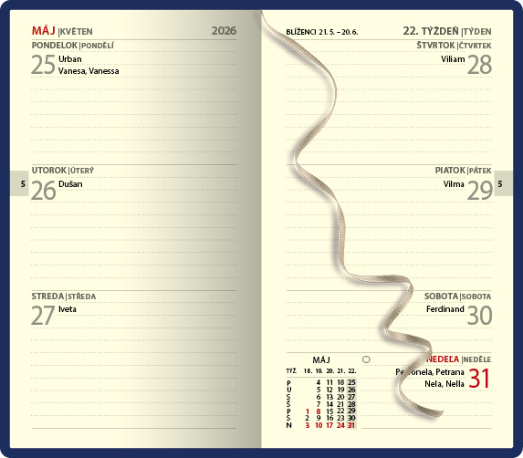 Exkluzívny mini diár. Diár je v pevnej väzbe s prednou penou, s metalickým efektom. Slovenské kalendárium. 80x140mm
