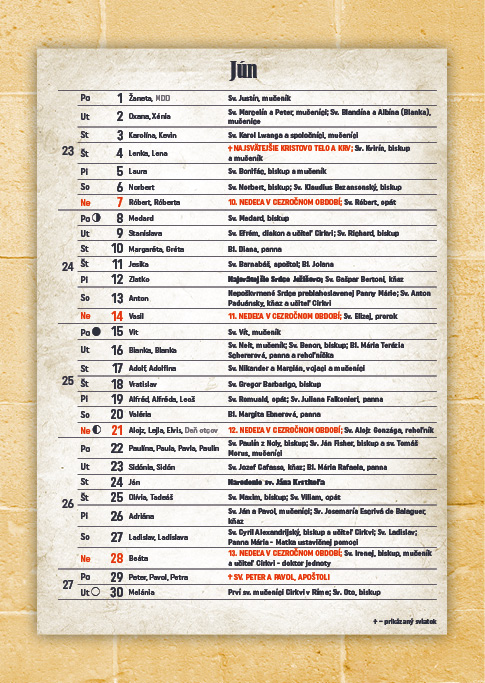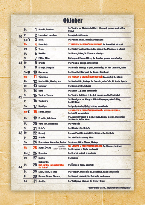 Nástenný mesačný kalendár s náboženskou tematikou a vzácnymi maľbami, sochami a vitrážami z chrámov a kostolov sveta. Obsahuje popisy diel a bohaté cirkevné i svetské kalendárium. Kalendár má dierku na zavesenie.