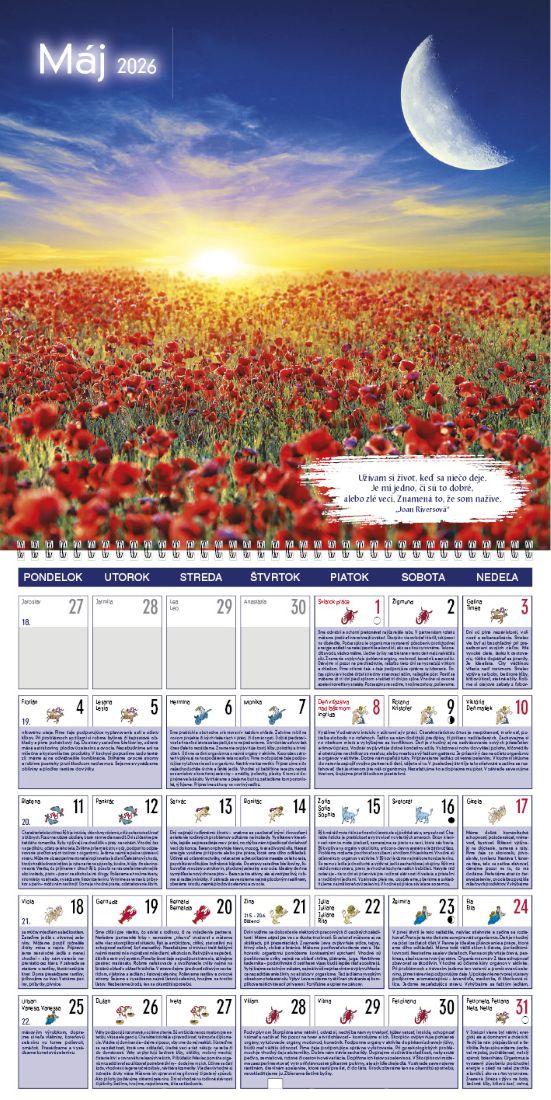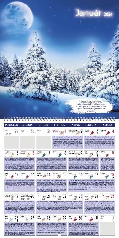 V tomto nástennom kalendári nájdete praktické rady, ktoré sú ovplyvňované mesačnými fázami. Lunárne informácie Vám poradia, čo robiť v jednotlivých fázach, prípadne čomu by ste sa mali vyhnúť. Odporúčame ako darček spolu s Lunárnym stolovým kalendárom a Lunárnym diárom. Inšpiratívne citáty na všedné pracovné dni umocnené silnými foto-obrazmi. Rozmer: 300 x 300 mm