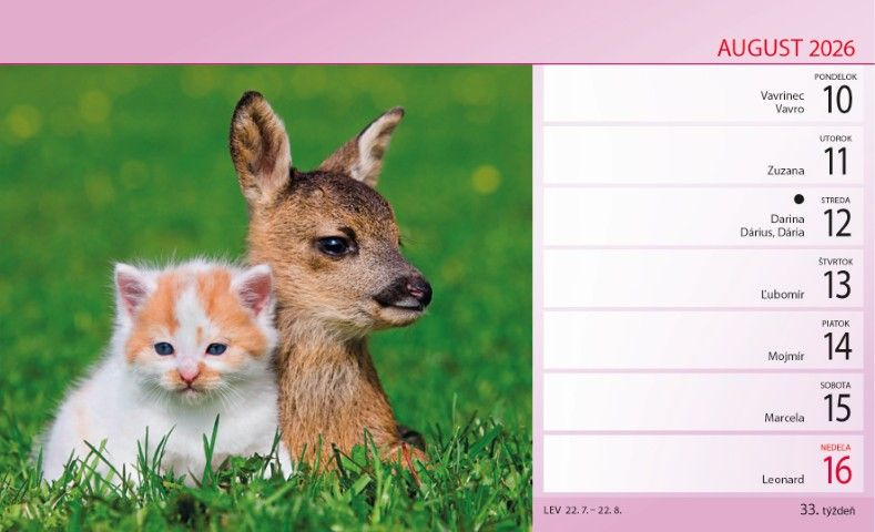 Praktický menší formát stolového riadkového kalendára pre všetkých milovníkov zvieracích maznáčikov. Značka: 230 x 140 mm