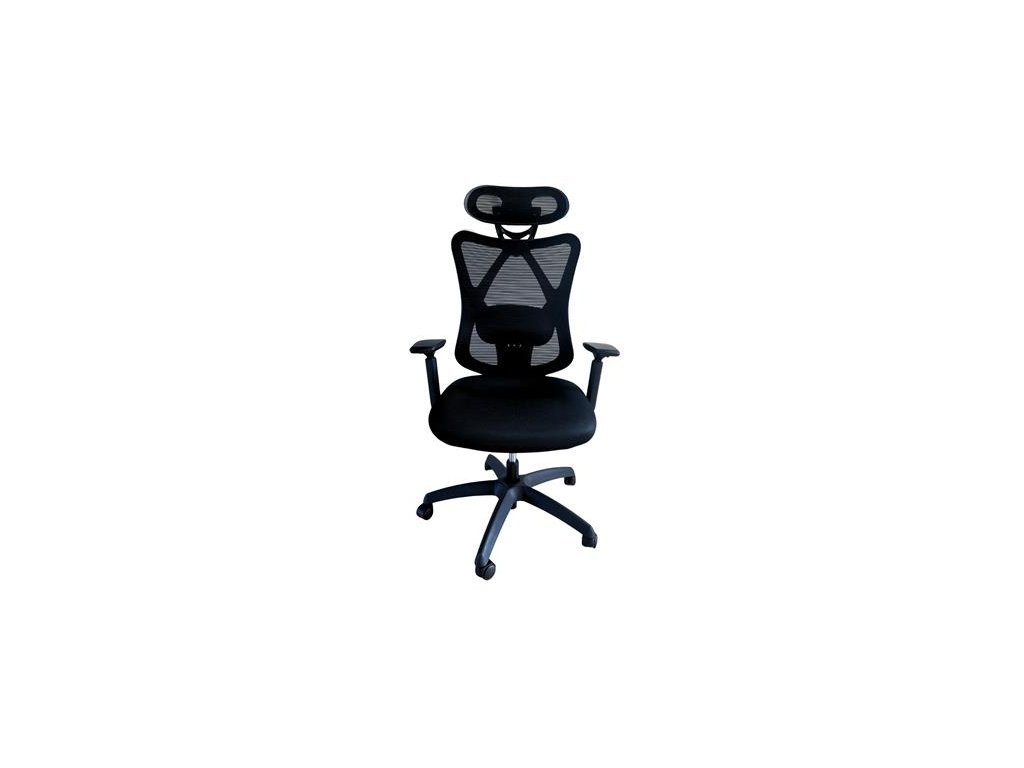 vysoké sieťované operadlo opierka hlavy s nastaviteľnou výškou a uhlom sklonu opierka drieku s nastaviteľnou výškou a hĺbkou čierne čalúnené sedadlo 1D lakťová opierka, mäkký podporný povrch synchrónová mechanika (antishock) čierny oceľový podstavec s priemerom 700 mm kolieska s priemerom 50 mm nosnosť: 130 kg denná doba používania: 7-10 hodín celková výška: 115-129 cm výška sedadla: 38-52 cm celková šírka: 70 cm šírka sedadla: 47 cm hĺbka sedadla: 47 cmDodatočné parametre