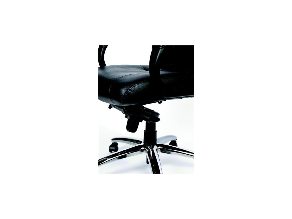 exkluzívne manažérske kreslo komfortné vyhotovenie elegantný vzhľad špeciálna hojdacia mechanika čalúnenie: pravá koža farba: čierna s vystuženými opierkami rúk chrómový, oceľový podstavec max. nosnosť: 135 kg rozmery: celková výška: 112-120 cm výška sedu: 50-58 cm hĺbka sedu: 52 cm šírka sedu: 53 cmDodatočné parametre