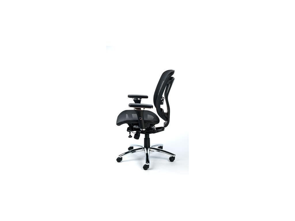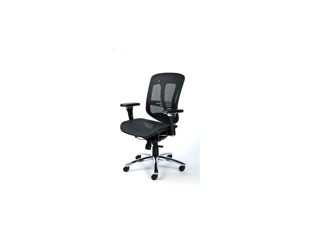 inovatívna kancelárska stolička nastaviteľná bedrová opierka komfortné vyhotovenie, ergonomicky tvarované operadlo plynové nastavenie výšky nastaviteľná hĺbka sedadla synchrónna mechanika hliníkový podstavec čalúnenie sedadla a operadla: napnutý sieťový materiál operadlo: sieťový materiál s opierkami rúk max. nosnosť: 110 kgDodatočné parametre