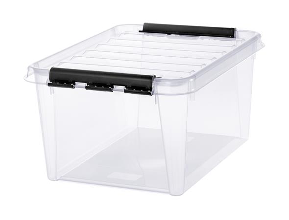 Úložný box, plastový, 32 l, čierne úchytky, SMARTSTORE "Classic 31",  priehľadný