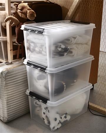 Úložný box, plastový, 47 l, čierne úchytky, SMARTSTORE "Classic 45", priehľadný