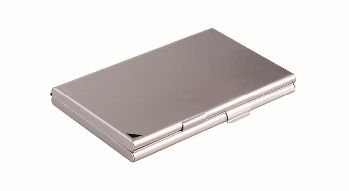 Elegantné hliníkové puzdro na vizitky s matným strieborným povrchom.