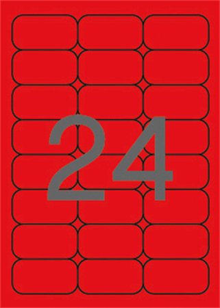 Etikety, 64x33,9 mm, farebné, zaoblené rohy, APLI, neónové červené, 480 etikiet/bal
