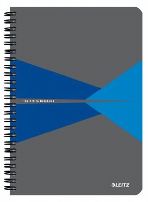 Blok, A5, linajkový, 90 listov, laminovaná kartónová obálka, LEITZ "Office", sivá-modrá