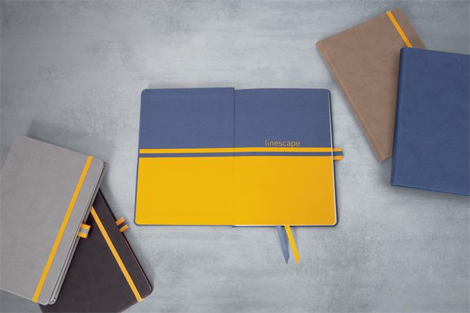 Diár, exkluzívny, A5, linajkový, 88 listov, tvrdá obálka, SIGEL "Linescape", modrá-žltá