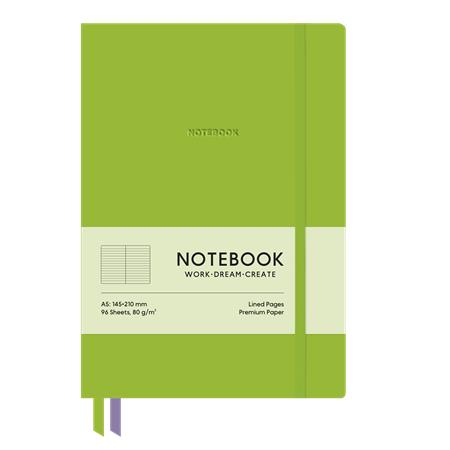 - formát A5 - uzatvárateľný na gumičku - textilná záložka v dvoch farbách - 96 listov - linajkový - papier krémovej farby - 80 g/m2