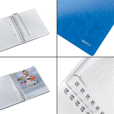 Špirálový zošit, A5, štvorčekový, 80 listov, LEITZ "Wow", modrý