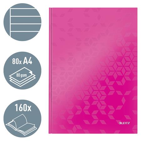 Záznamová kniha, A4, linajková, 80 listov, tvrdá obálka, LEITZ "Wow", ružová