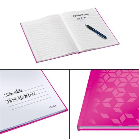 Záznamová kniha, A5, štvorčeková, 80 listov, tvrdá obálka, LEITZ "Wow", ružová