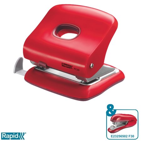 Dierovačka, 2 dierky, 30 listov, RAPID "FC30 Fashion", červená