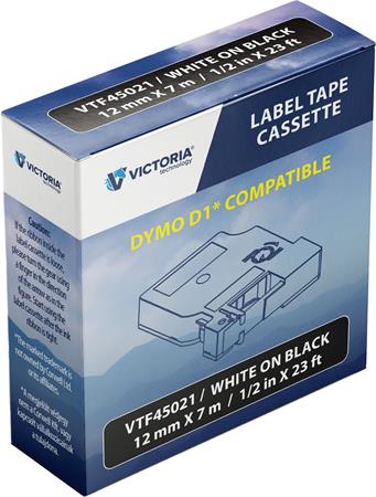 Páska do štítkovača 12 mm x 7 m, kompatibilita: DYMO D1, VICTORIA TECHNOLOGY, čierna-biela