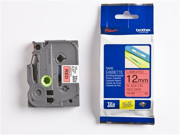 Páska do štítkovača, 12 mm x 8 m, BROTHER, červená-čierna