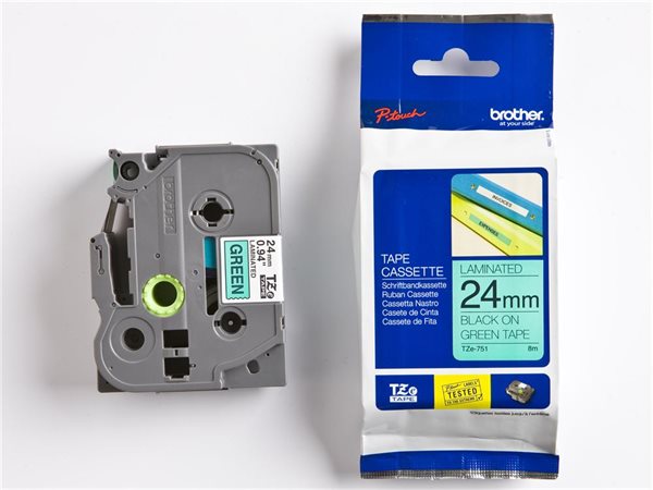 Páska do štítkovača, 24 mm x 8 m, BROTHER, zelená-čierna