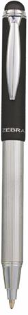 Guľôčkové pero, 0,24 mm, teleskopické, nehrdzavejúca oceľ, grafitovo-sivé telo, ZEBRA "Telescopic Metal Stylus", modrá