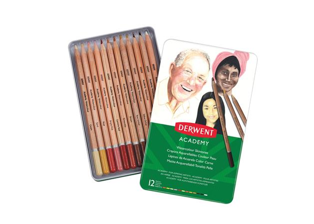 Akvarelové ceruzky, sada, DERWENT "Academy", 12 rôznych farieb