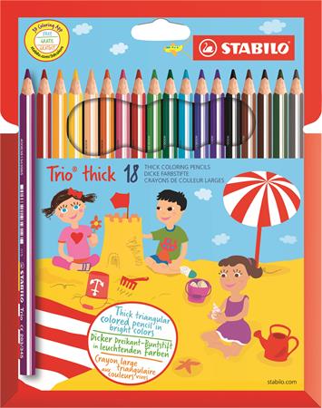 Farebné ceruzky, trojhranné, hrubé, STABILO "Trio thick", 18 rôznych farieb